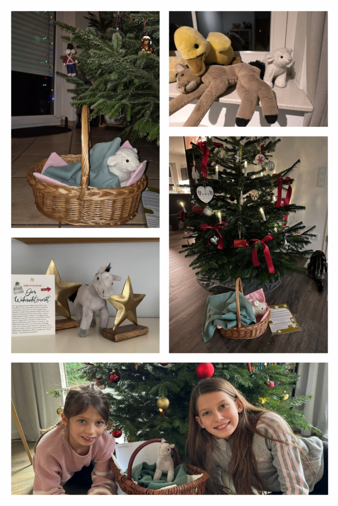Das sind Schaf, Ochse und Esel. Auch in diesem Jahr wandern die Drei wieder durch unsere Gemeinde. Am 24.12. möchten sie in der Corneliuskirche zum Krippenspiel ankommen. Vielleicht dürfen sie ja auch bei Euch übernachten. Eine Anleitung findet Ihr in ihrem Körbchen. Auf unserer Homepage und auf Instagram kannst du die Reise der Drei verfolgen.